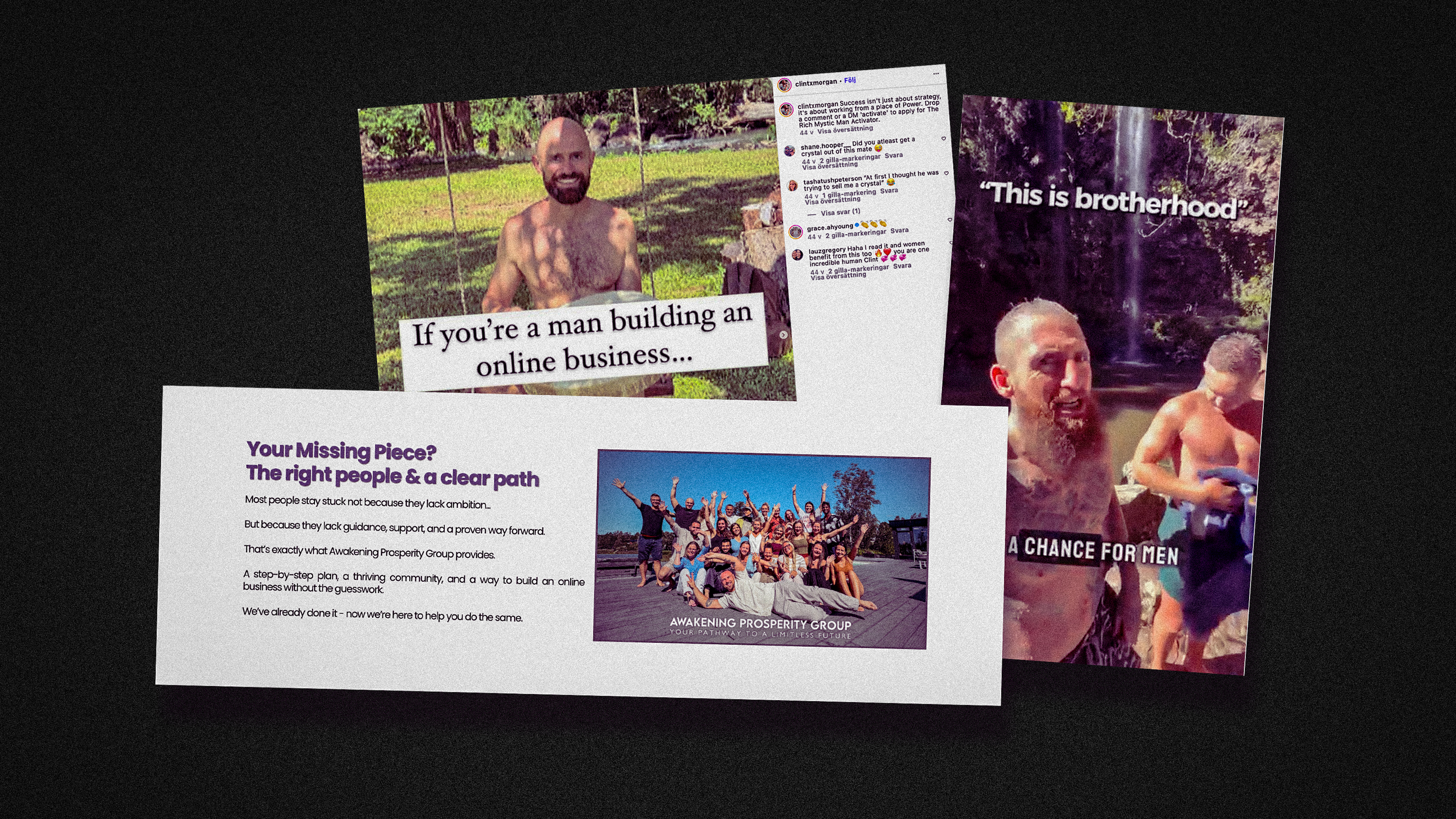 I Sverige finns också Awakening prosperity group, en förgrening som marknadsför sig som en helhetslösning för att uppnå mening med livet. Det är den grenen som Mello-artisten har anslutit sig till. På Instagram säger han att det har förändrat hans liv.
