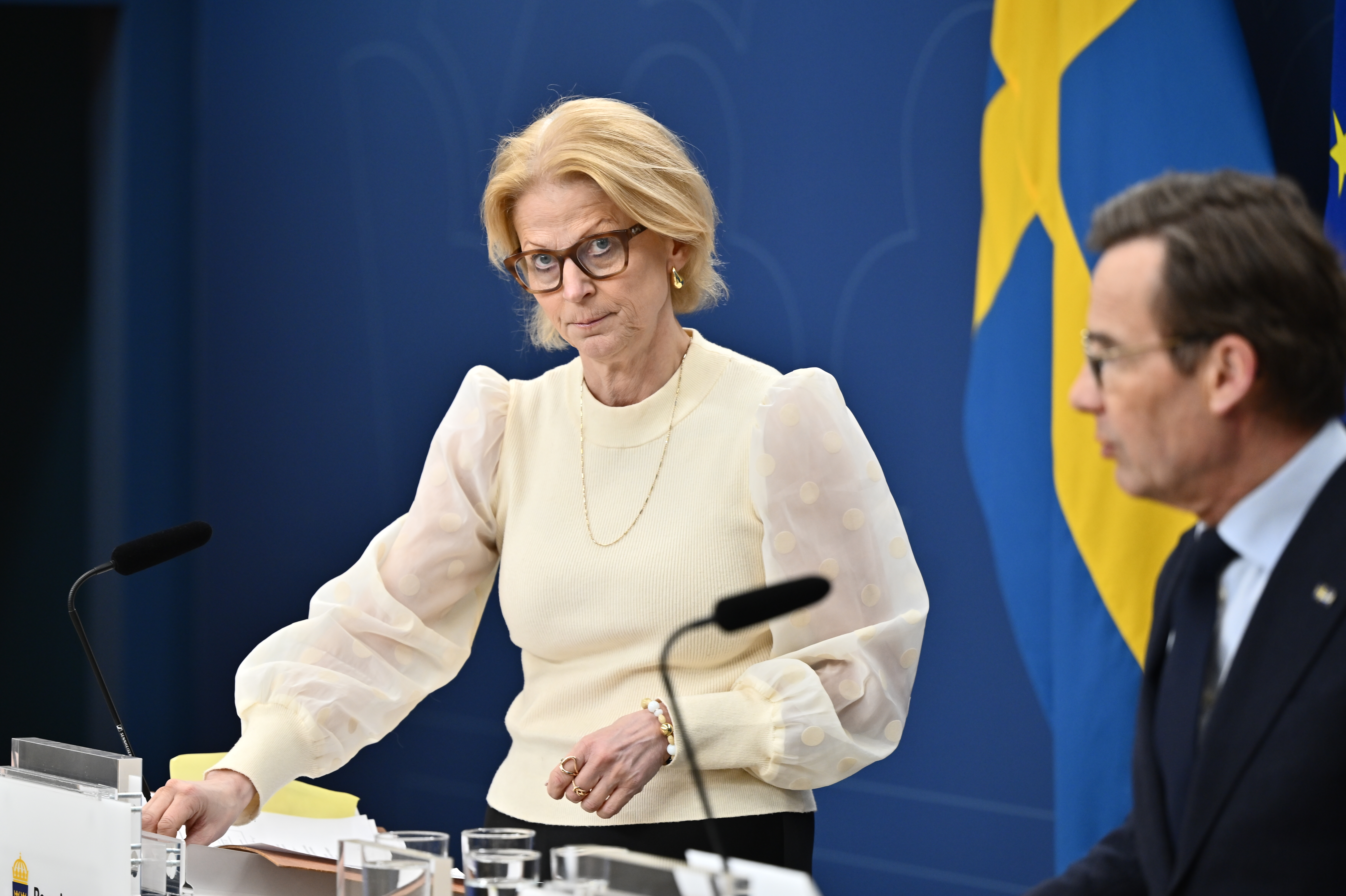 Statsminister Ulf Kristersson (M) och finansminister Elisabeth Svantesson (M) håller en pressträff om det ekonomiska läget med bakgrund av krisen i Mellanöstern.