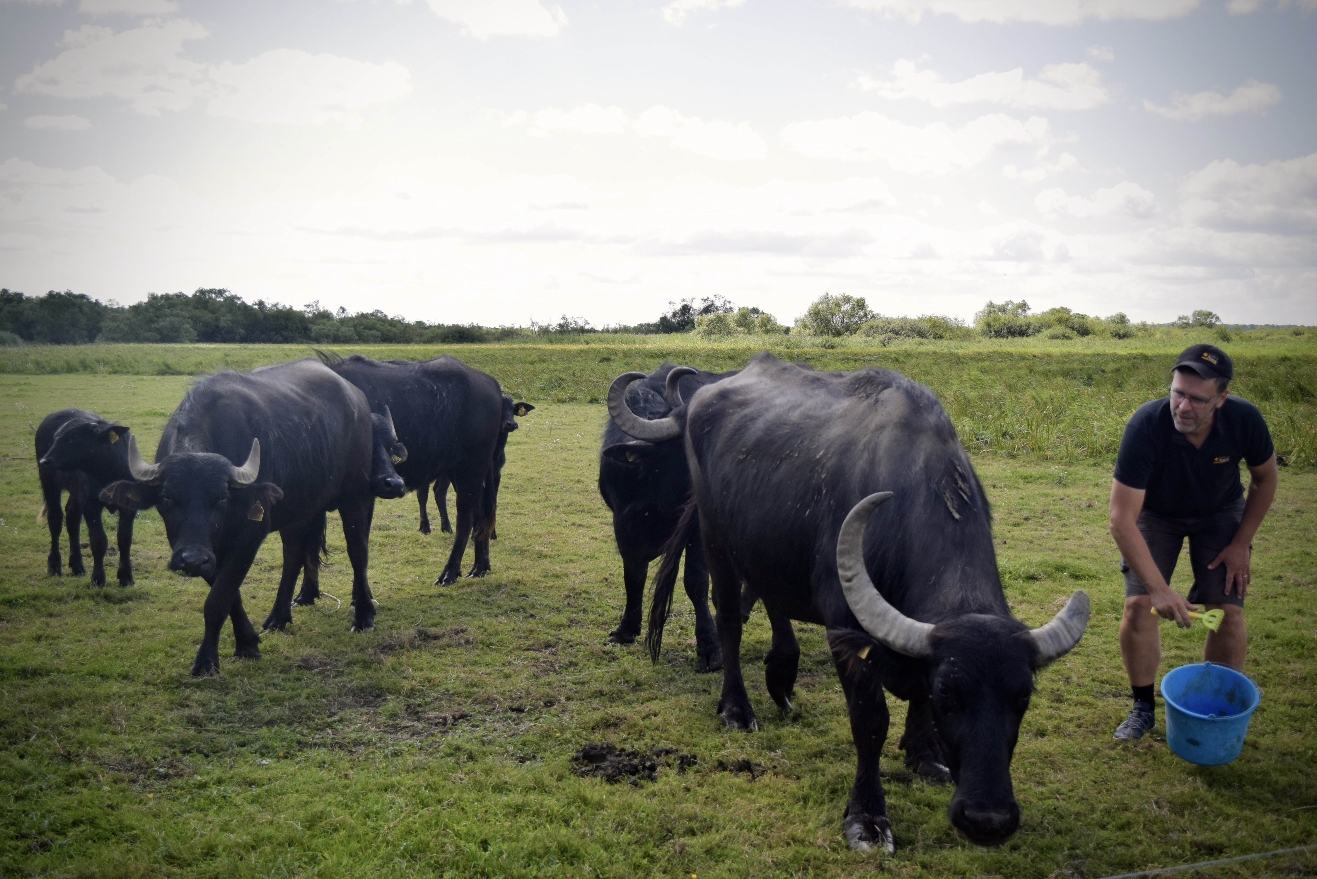 Det ser ut som en savann, fast grönare. Ett ensamt träd hukar under vinden och skänker skugga i ett annars platt och öppet landskap. Kristianstads vattenrike får snarare tankarna till Serengeti i Kenya än Skåne. I horisonten ses mörka stora stenblock som verkar röra på sig ju närmare bilen kommer. Nej, det är inte stenar utan svarta kor. Nej, det är inte kor, det är vattenbufflar! Lantbrukaren Olof Friberg stannar bilen, går ut och plockar fram en blå spann.