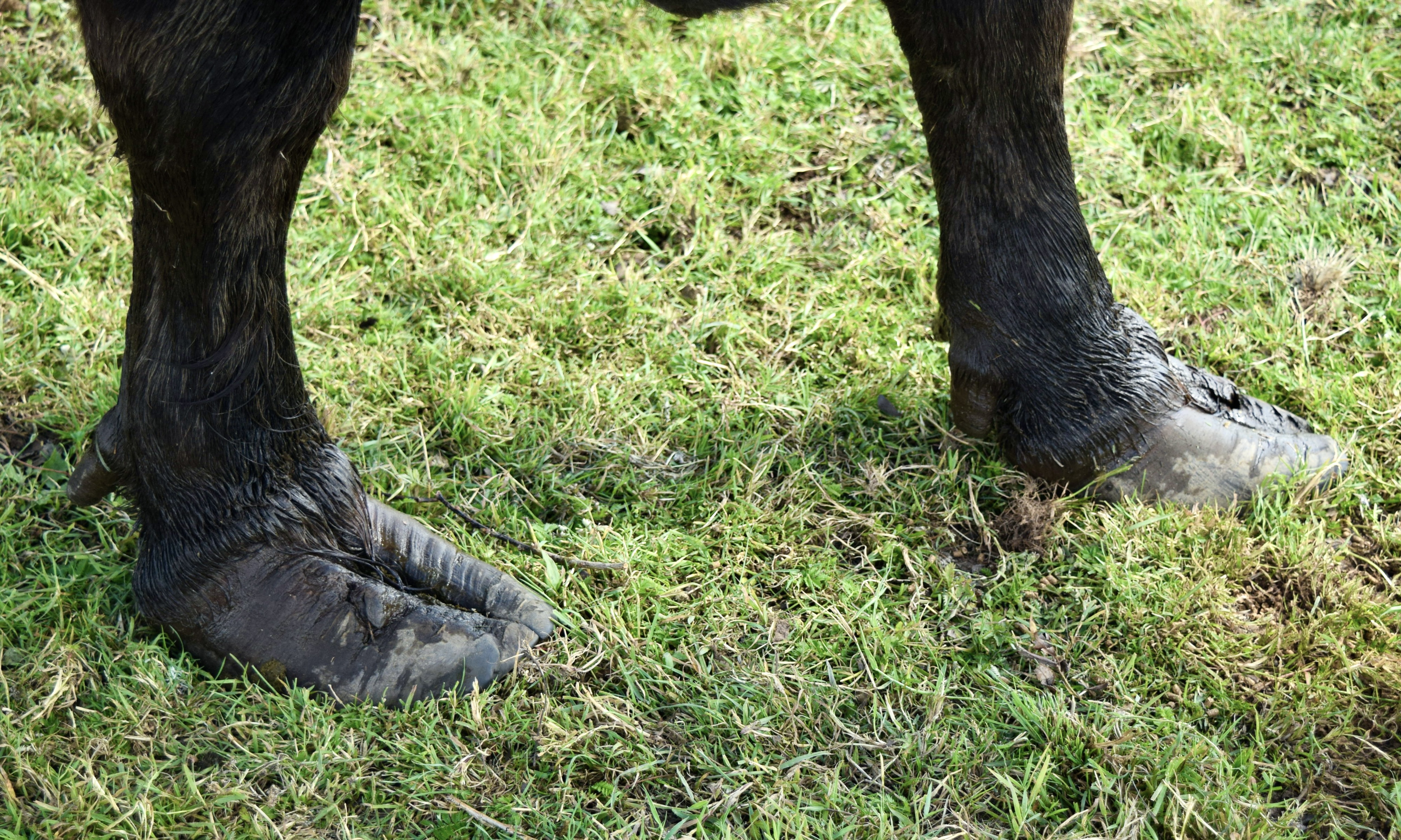 – De fungerar ungefär som snöskor, fast i vatten. De gör att bufflarna har lättare att ta sig ut i vassbältet och lättare att kommer loss ur lera. Bufflarna kan till och med beta under vattenytan.