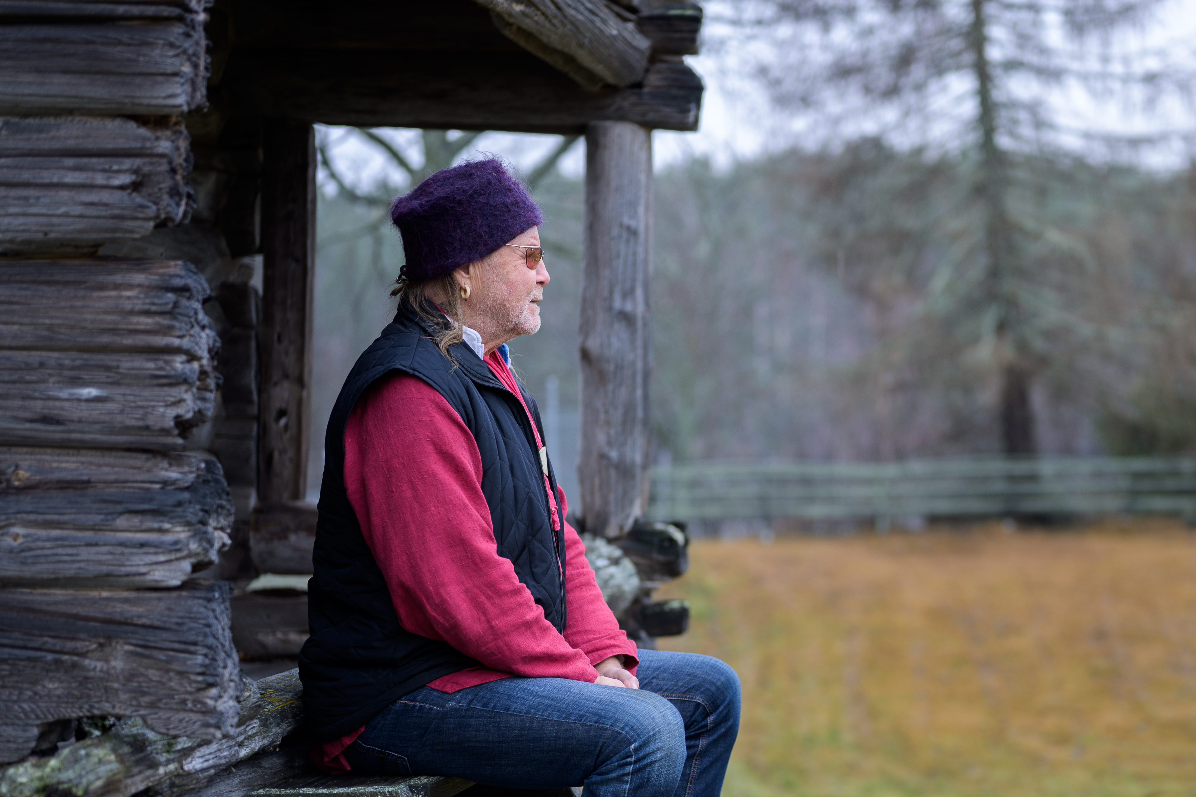 Han pratar mycket långsamt, som på en alldeles egen våglängd. Ett ord i taget om att växla mellan livstempon och dimensioner. Att resa mellan skog och scen. Men också om att byta luftvärmepump.