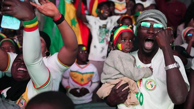 Senegaleser firar att landets fotbollslandslag är bäst i Afrika efter en dramatisk finalseger mot Marocko med 1–0. I slutet av ordinarie tid fick Senegal ett ledningsmål bortdömt för knuff. När Marocko tilldömdes en straff några minuter senare klev Senegals spelare av i protest mot domslutet och lagets supportrar försökte storma planen. Men när spelet återupptogs en stund senare missade straffskytten Brahim Diaz chansen att skjuta hem titeln till Marocko. Istället gick matchen till förlängning där Senegals Pape Gueye kunde avgöra.