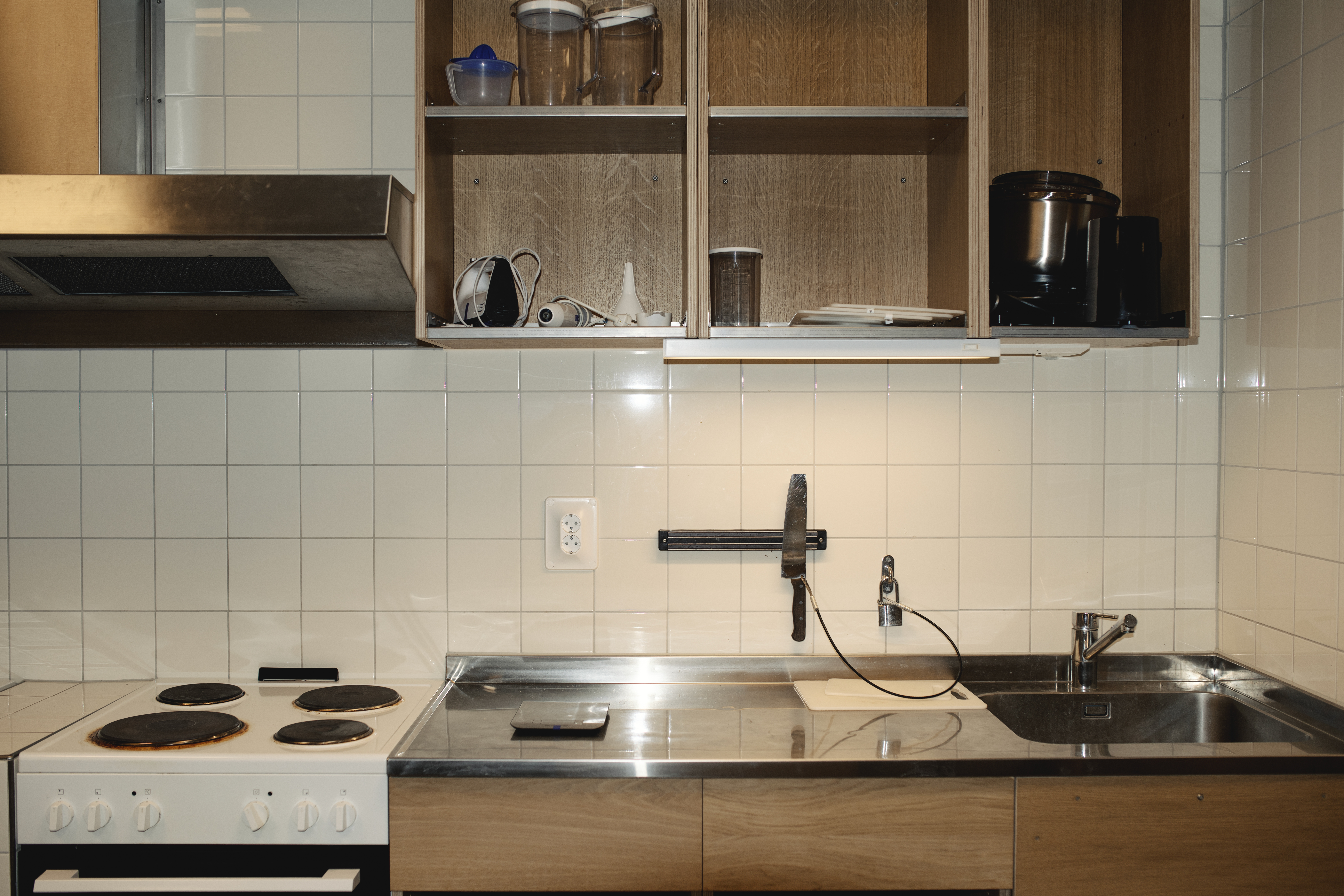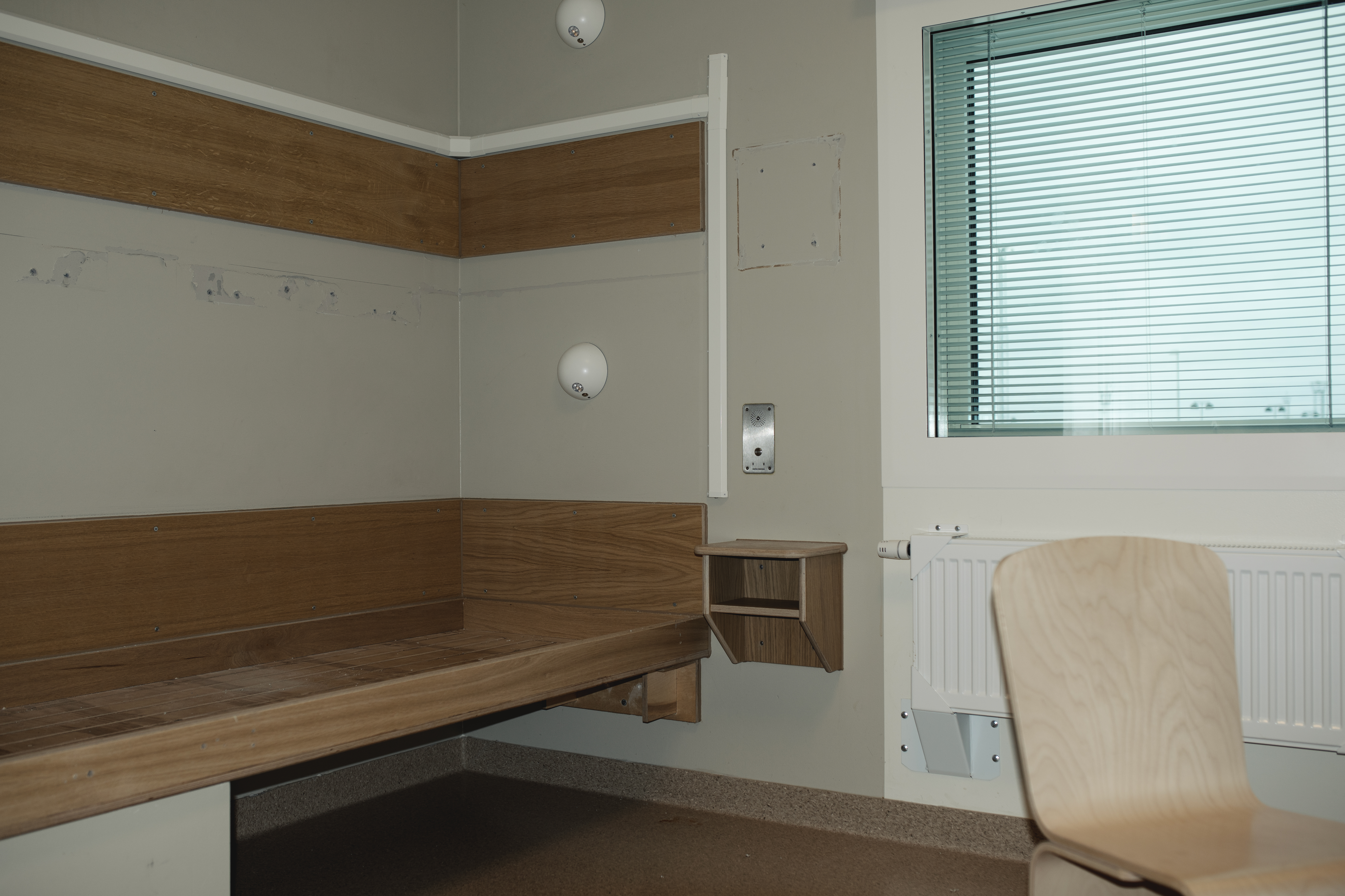 På väggen gapar fortfarande tomma skruvhål, spår efter den överslaf som nyligen monterats ned. Bara några dagar tidigare har övervåningen i hus H2 på Kumla tömts på fångar för att kunna byggas om till barn- och ungdomsavdelningar.